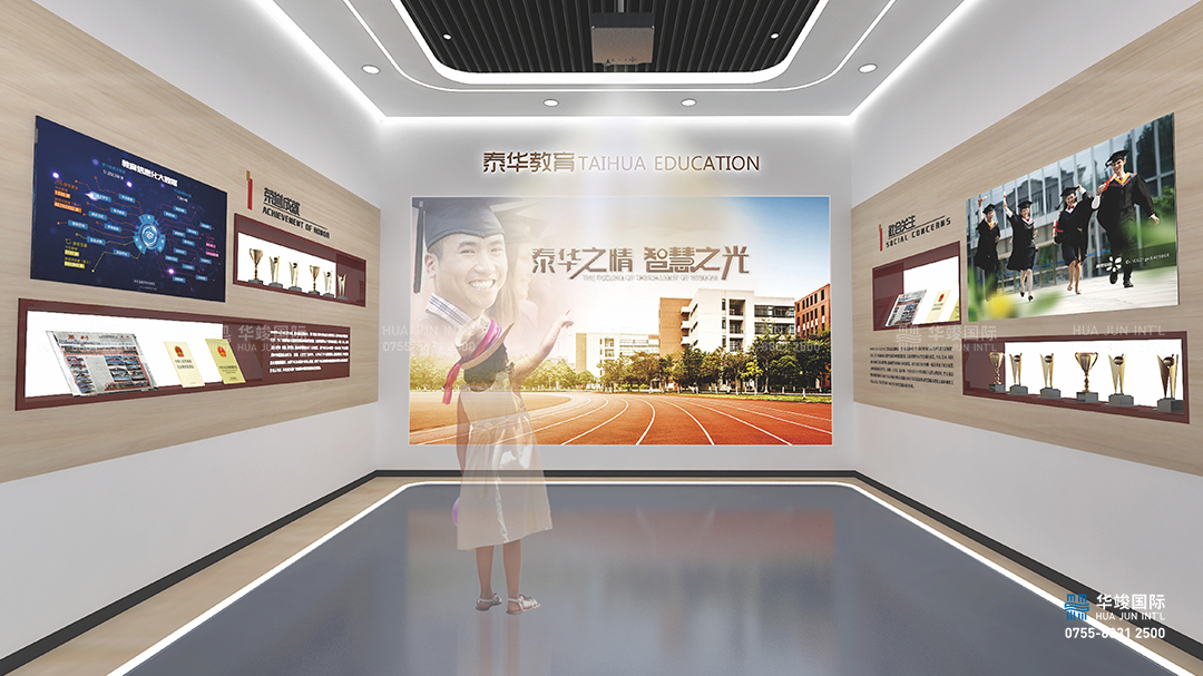 泰華教育展廳設(shè)計(jì)理念,華竣從泰華辦學(xué)的情·懷,情·敬,情·競,情·境,情·景入手,傾情呈現(xiàn)泰華教育的創(chuàng)新辦學(xué)模式,從多角度、多面孔、全方位、跨時(shí)空展示泰華教育模式和成果,讓參觀者既能鳥瞰全景,又能觀照細(xì)部,獲得整體而不失深刻的印象。